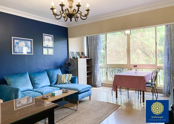 The spacious Blue 2Br Apartment In Green Maadi is located in the Maadi district, just a minute's drive from Tora El-Balad tube station. Maadi Grand Mall is reachable nearly 25 minutes' walk away.